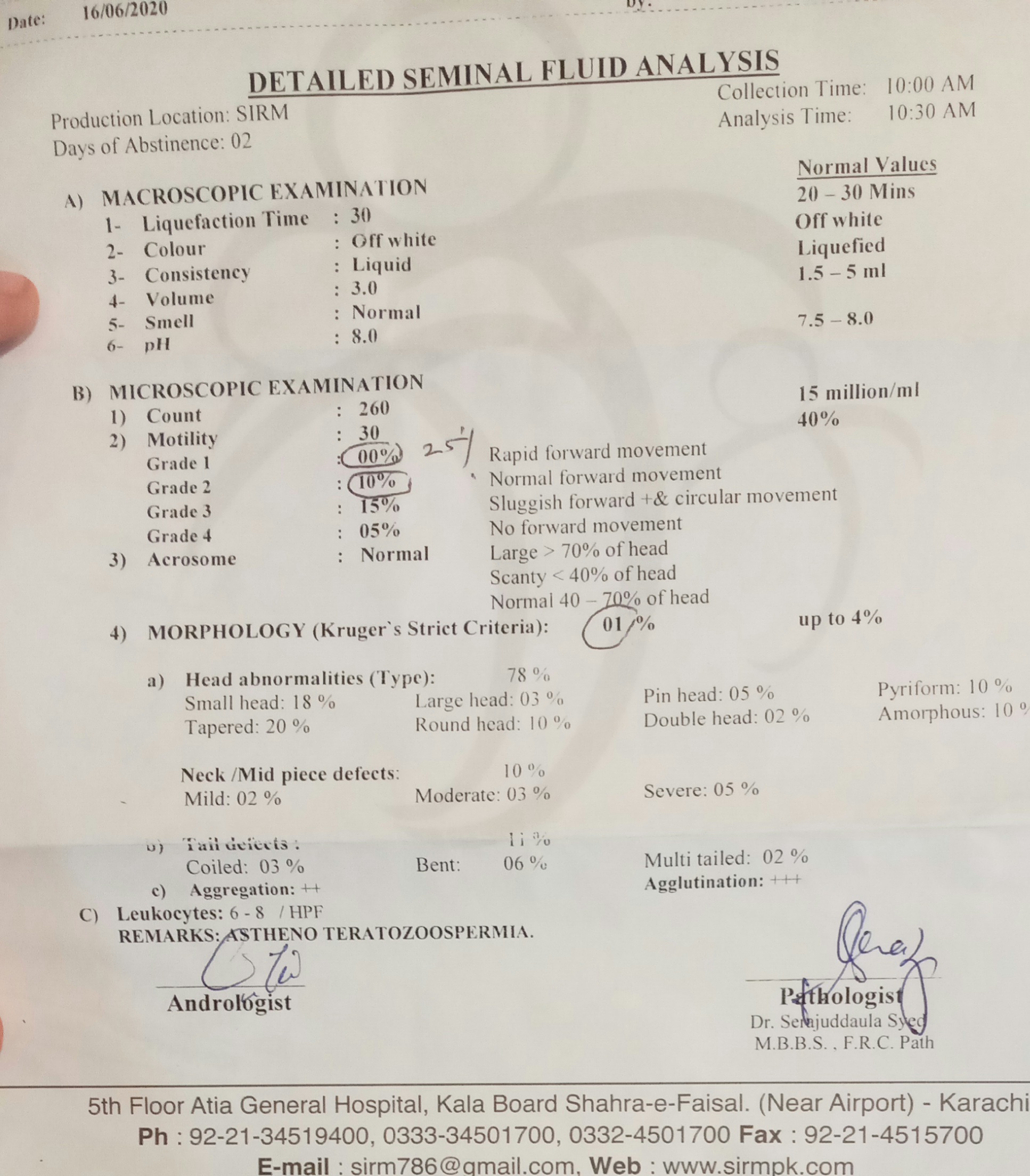 There is issue with normal form and motility needs consultation