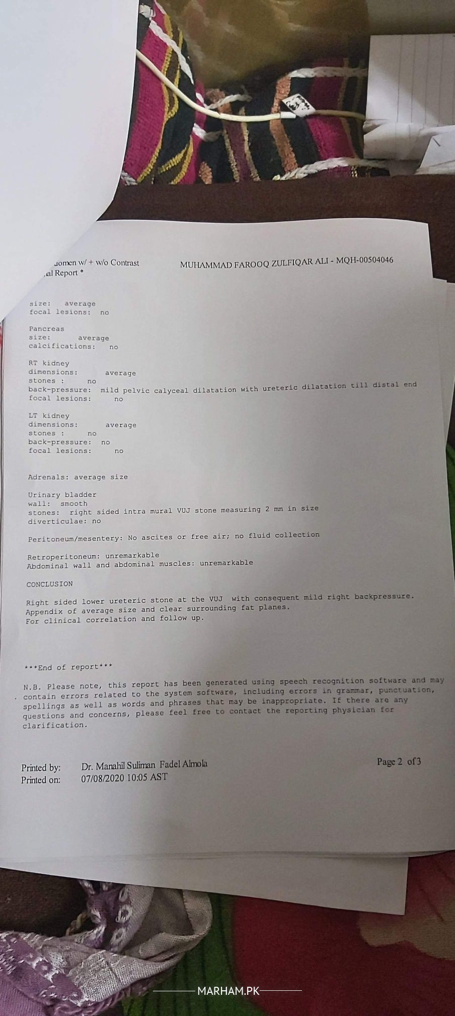 27, year old had abdominal pain few days back & admitted in hospital. Attaching his reports and prescription. As the doctor was speaking Arabic the patient wasnt able to understand the pathology behind the pain. Please dignose attaching reports down there.