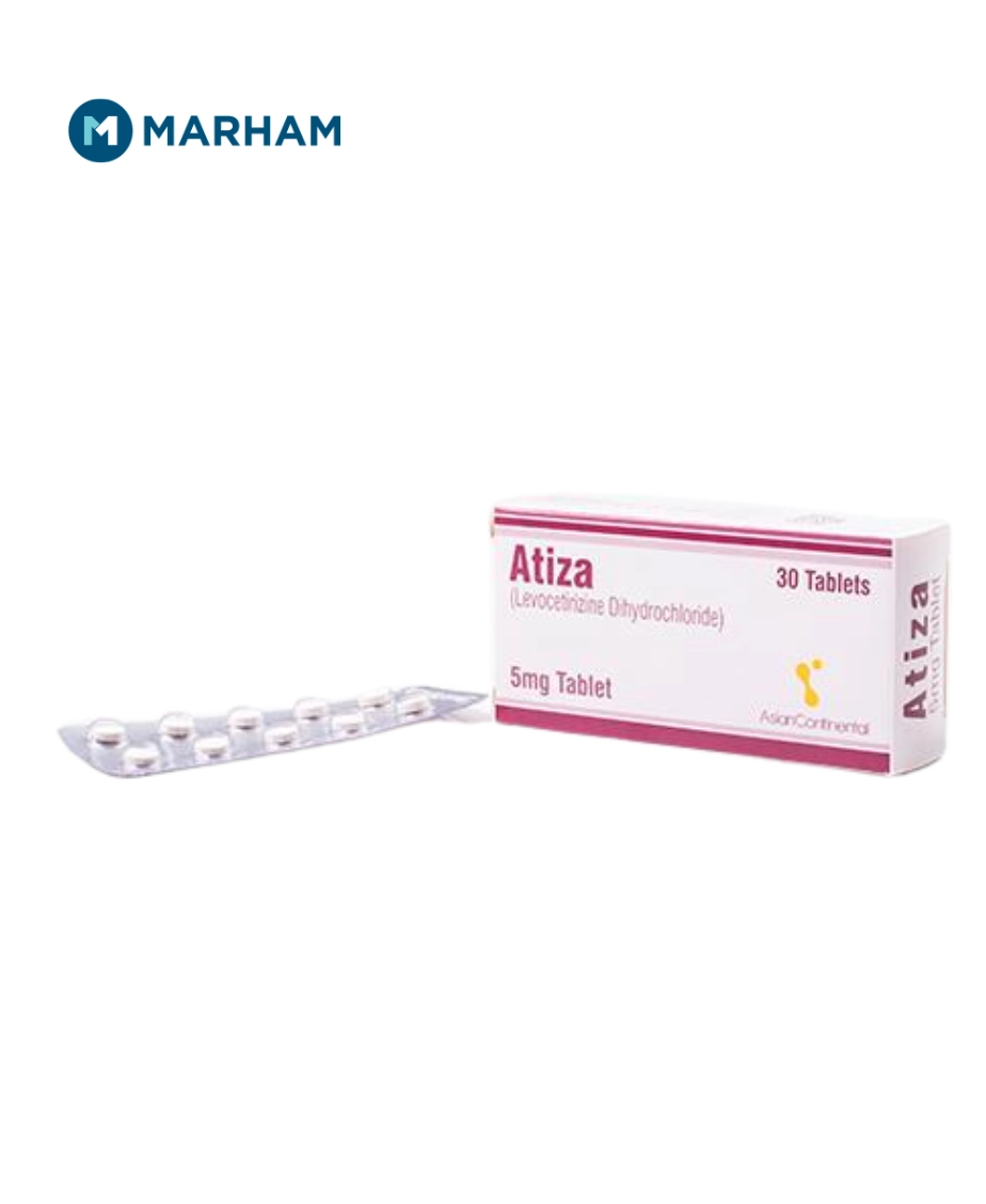 Atiza Tablet uses include the relief of allergy symptoms such as runny nose, sneezing, itchy eyes, and skin rashes by blocking the action of histamine in the body. It contains Levocetirizine, a second-generation antihistamine that provides effective relief from seasonal and year-round allergies with minimal drowsiness compared to older antihistamines.