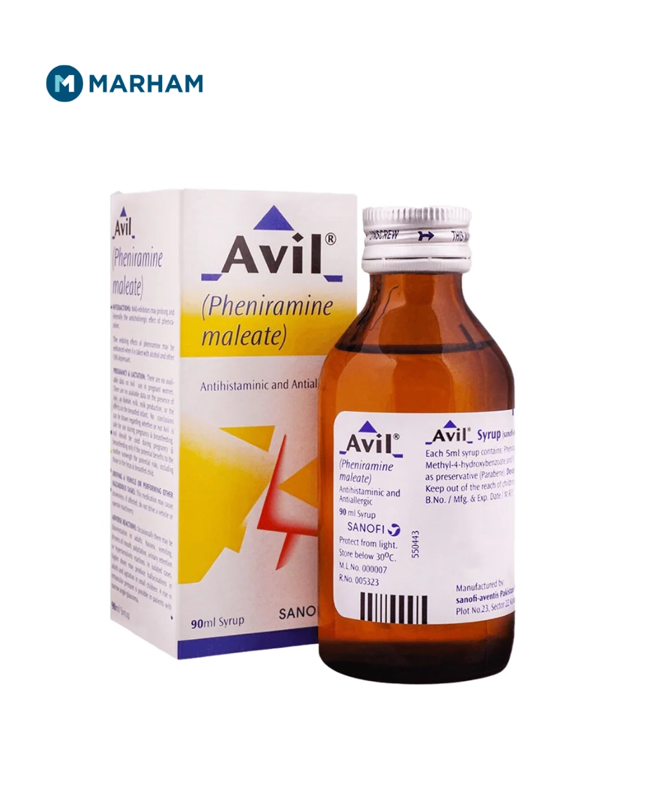 AVIL Syrup uses include relief from common allergy symptoms such as sneezing, itching, watery eyes, skin rashes, and runny nose caused by allergic conditions. It works by blocking the effects of histamine in the body and is commonly used for seasonal and environmental allergies in Pakistan.