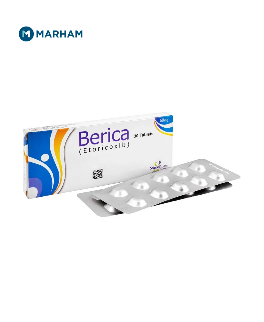 Berica Tablet uses include relieving pain and inflammation associated with arthritis, gout, spondylitis, and musculoskeletal disorders. The active ingredient Etoricoxib works by selectively inhibiting the COX-2 enzyme, which plays a key role in producing pain and inflammation.