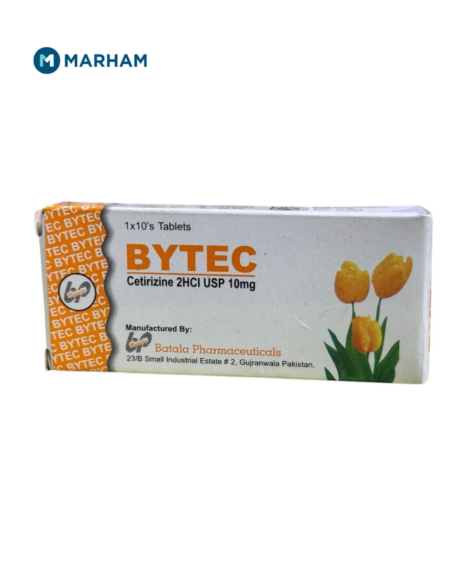 Bytec Tablet uses include treating allergy symptoms like sneezing, runny nose, watery eyes, and skin itching caused by allergic conditions. It helps reduce the effects of histamine in the body and is commonly used for seasonal allergies and allergic skin reactions.