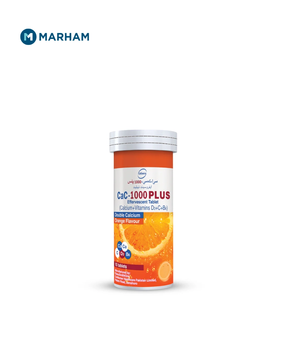 CaC 1000 Plus is available as effervescent tablets, typically 10 tablets per bottle.
