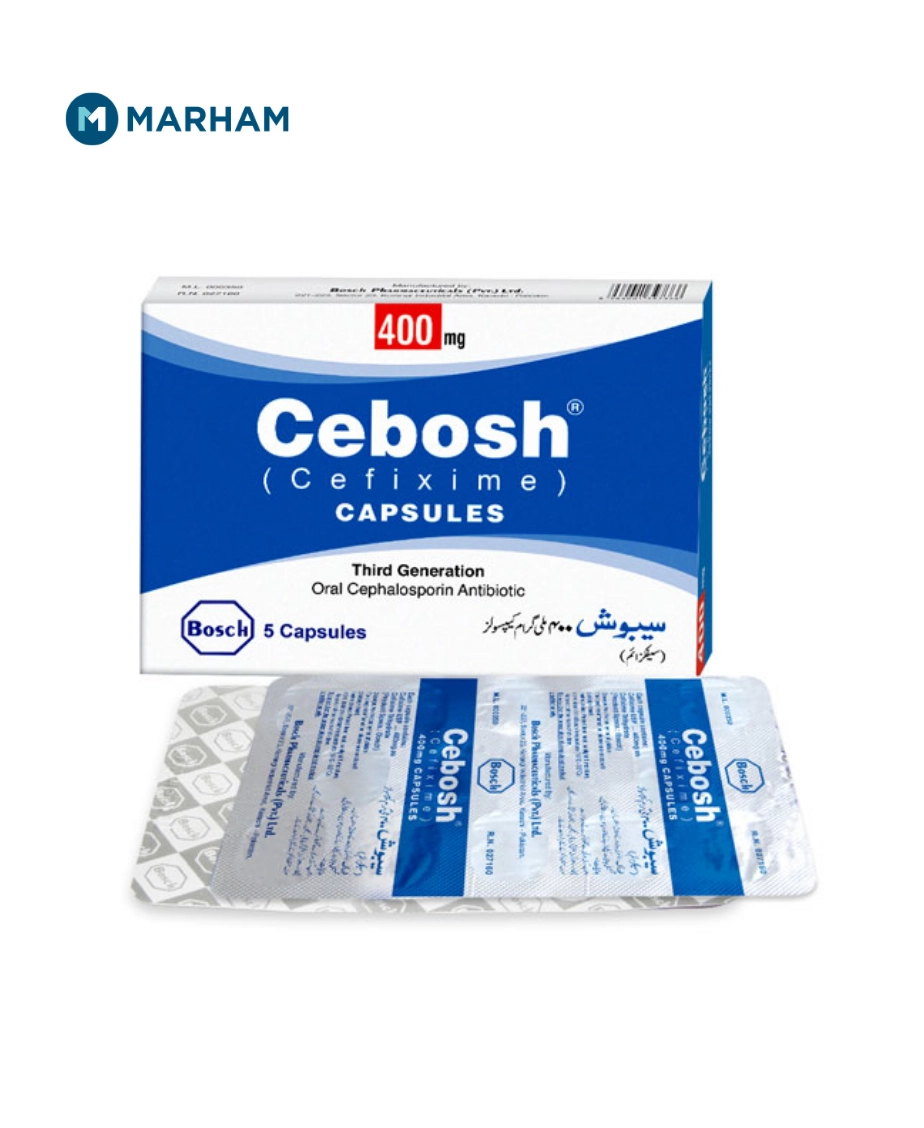 Cebosh tablet uses include treating infections of the respiratory tract, urinary tract, skin, throat, and other bacterial infections. It is prescribed for the treatment of bacterial infections. It belongs to the cephalosporin class of antibiotics and works by stopping the growth of bacteria.