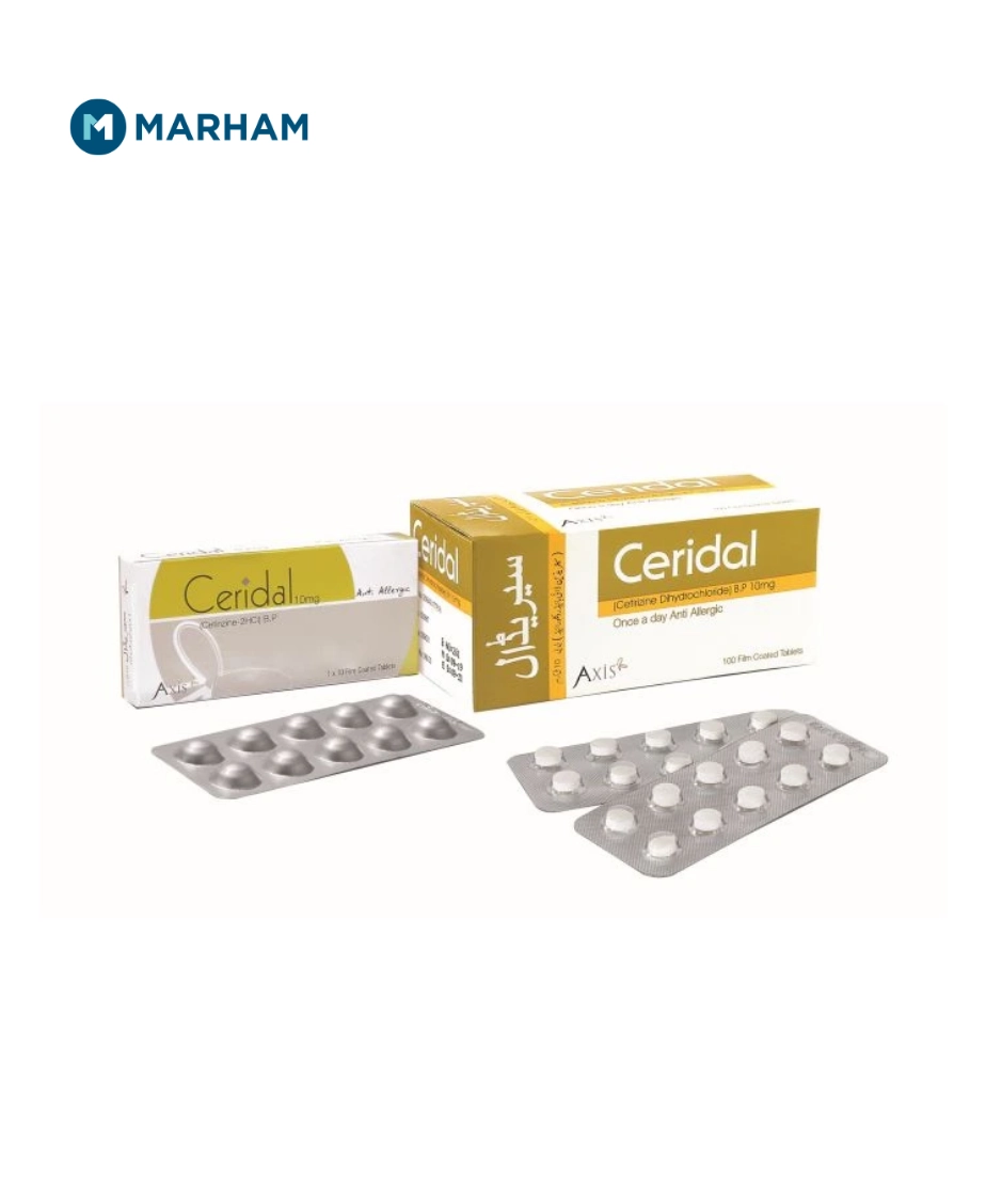 Ceridal Tablet uses include relief of symptoms caused by allergic reactions. It contains Cetirizine, a second‑generation antihistamine that works by blocking the action of histamine. It's a chemical released by the body during allergies. This helps reduce sneezing, itching, watery eyes, runny nose, skin rashes, and other allergy symptoms. It usually causes less drowsiness than older antihistamines.
