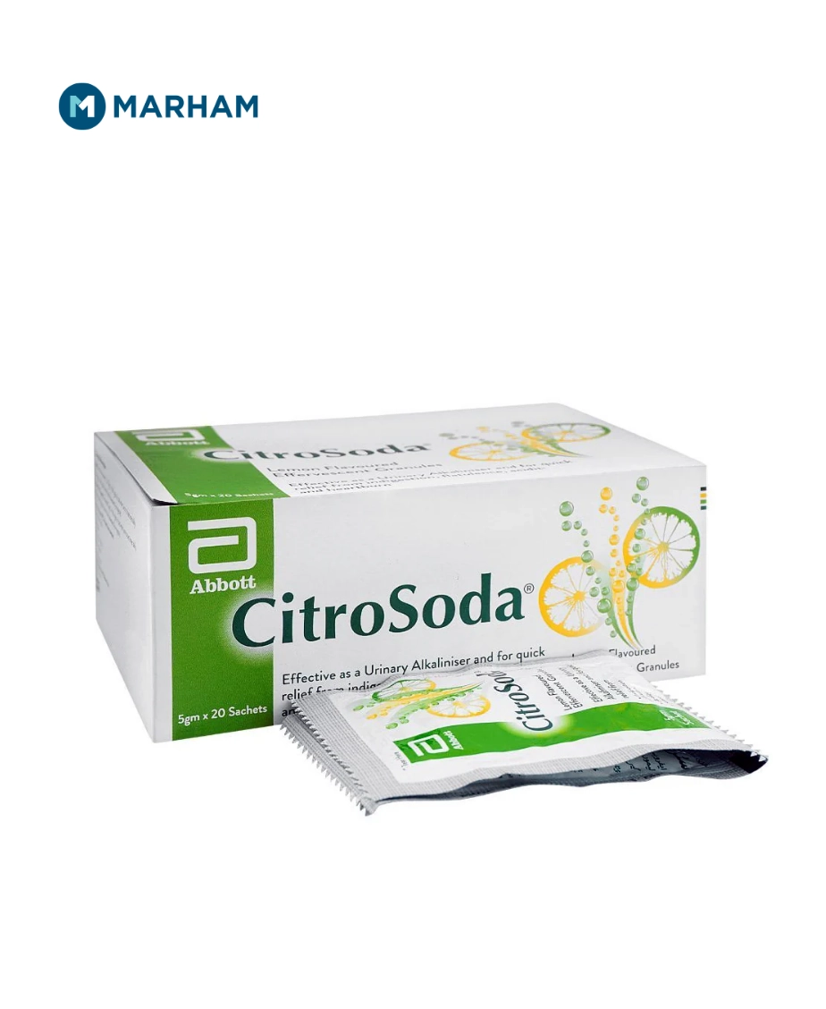 Citro Soda sachet uses include temporary relief of acidity, indigestion, and discomfort caused by excess stomach acid. It also helps maintain an alkaline environment in the urine, which can be beneficial for certain urinary conditions such as urinary tract infections and kidney stones. The combination of electrolytes and effervescent agents in the sachet neutralizes stomach acid and raises urine pH for relief and comfort.