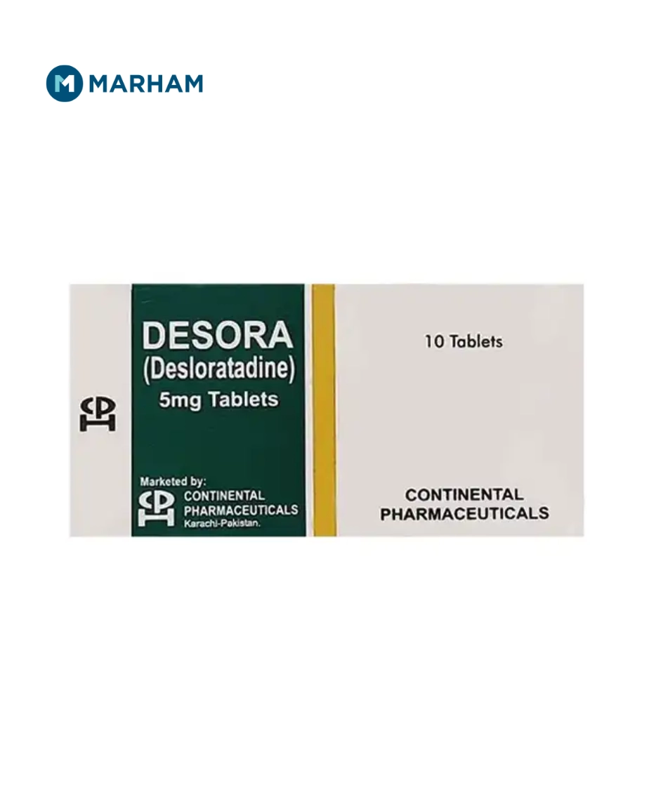 Desora Tablet uses include relief from allergic rhinitis and skin allergies such as itching, sneezing, watery eyes, and hives. It contains desloratadine, a non-drowsy antihistamine that controls allergic reactions and provides 24-hour relief. It is used for nasal allergies and urticaria (hives) in adults and adolescents aged 12 years and older.