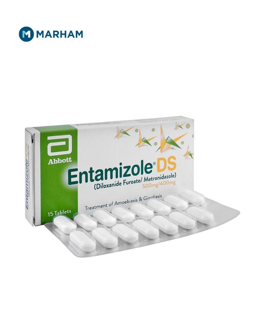 Entamizole DS Tablet is commonly available in packs of 15 tablets (500 mg/400 mg) in Pakistan.