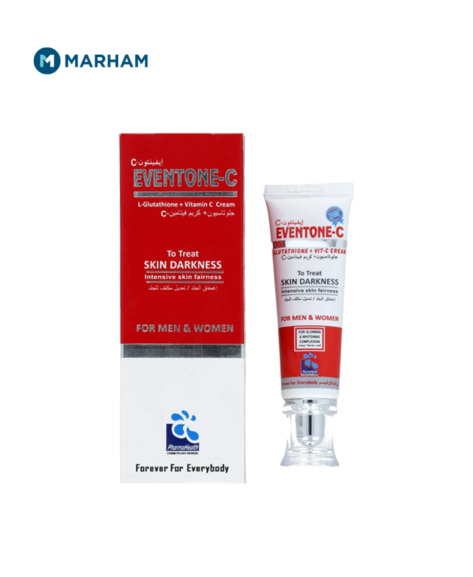 Eventone C Cream is designed to help lighten dark spots and improve skin complexion. This cream contains a combination of skin brightening and antioxidant agents, which work together to fade pigmentation and improve skin tone. It is generally used for conditions such as melasma, sun damage, and postinflammatory hyperpigmentation.