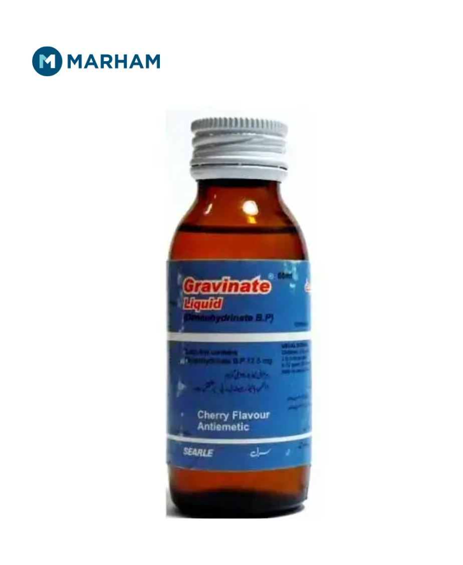 Gravinate Syrup uses include relief from nausea, vomiting, and motion sickness by calming the balance center of the brain and reducing stomach discomfort. This medicine is commonly used in Pakistan for travel-related sickness and general vomiting issues, especially when advised by a doctor.