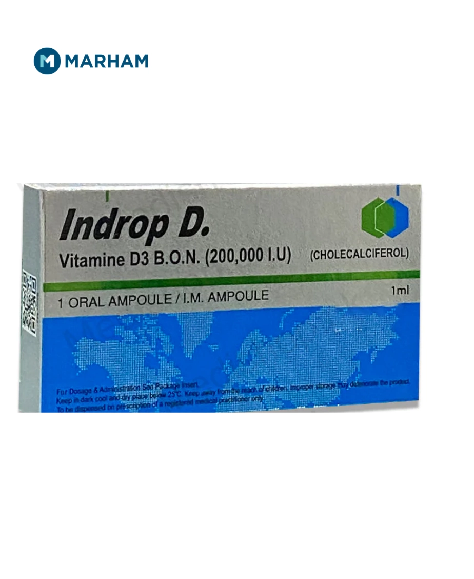 Indrop D Injection uses include treating vitamin D deficiency and related bone conditions in people who cannot maintain normal vitamin D levels through diet or sunlight alone. It helps the body absorb calcium properly, supports bone strength, and maintains healthy mineral balance, especially in patients with low vitamin D levels in Pakistan.