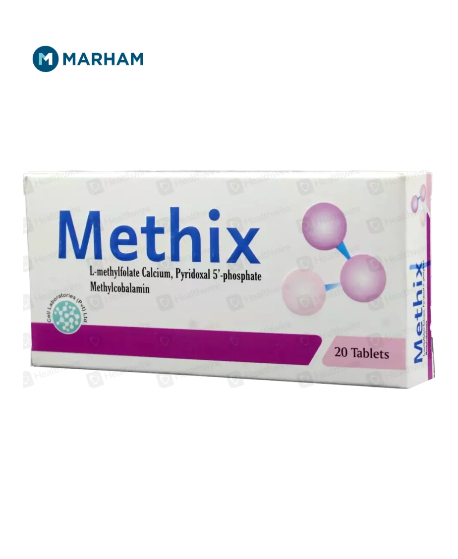 Methix Tablet uses include helping the body maintain healthy folate levels, supporting red blood cell formation, and preventing folate deficiency-related problems. It is commonly prescribed in conditions where folate requirements are increased or absorption is reduced, especially in Pakistani patients with nutritional deficiencies.