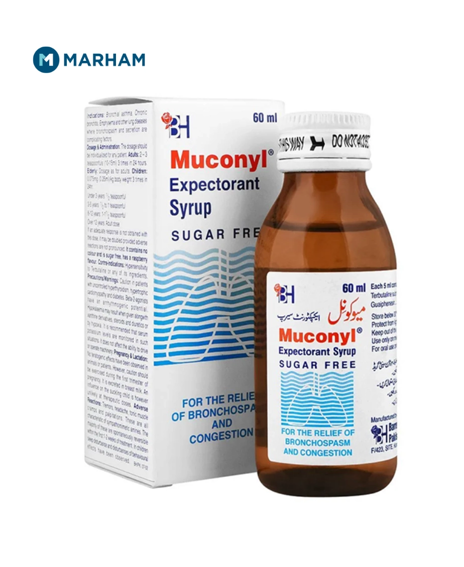 Muconyl Syrup Uses include the treatment of cough with mucus and chest congestion. It works by thinning and loosening phlegm to make coughing easier, while also helping open the airways to improve breathing. This syrup is commonly prescribed for bronchitis, chesty cough, and respiratory conditions with mucus buildup, and should be used as advised by a doctor.