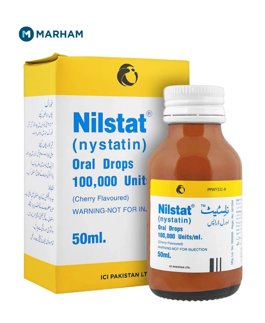Nilstat drops uses include helping with fungal infections in the mouth, in the digestive tract, oral thrush (white patches in mouth) and intestinal candidiasis. It has Nystatin inside which works by killing the fungus or stopping its growth without being absorbed into the bloodstream.