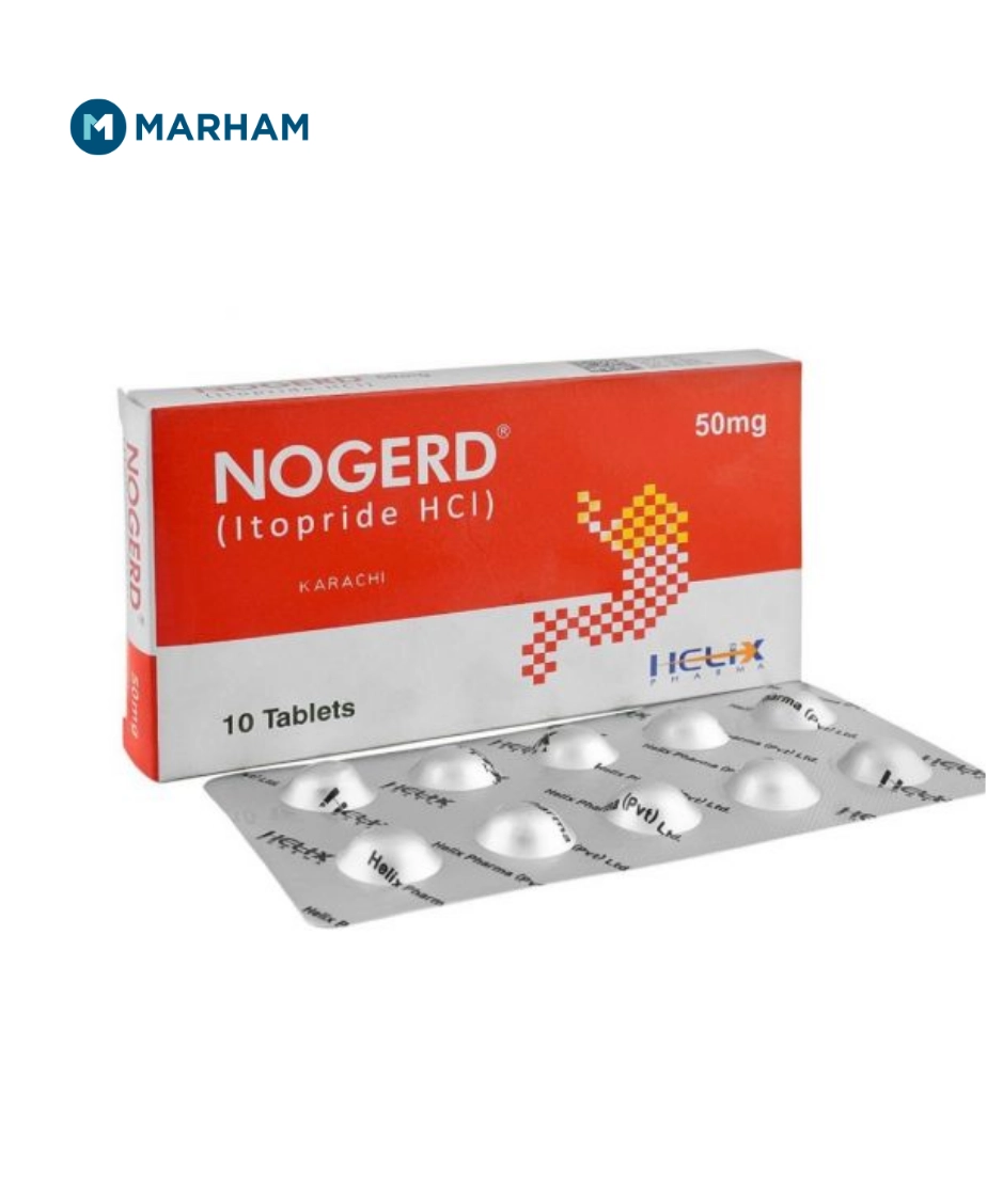 Nogerd Tablet uses include relief from stomach discomfort, poor digestion, nausea, and symptoms linked with slow stomach movement. It helps the stomach empty food properly and reduces feelings of fullness, heartburn, and vomiting. This medicine is commonly used for digestive problems in Pakistani patients under medical advice.