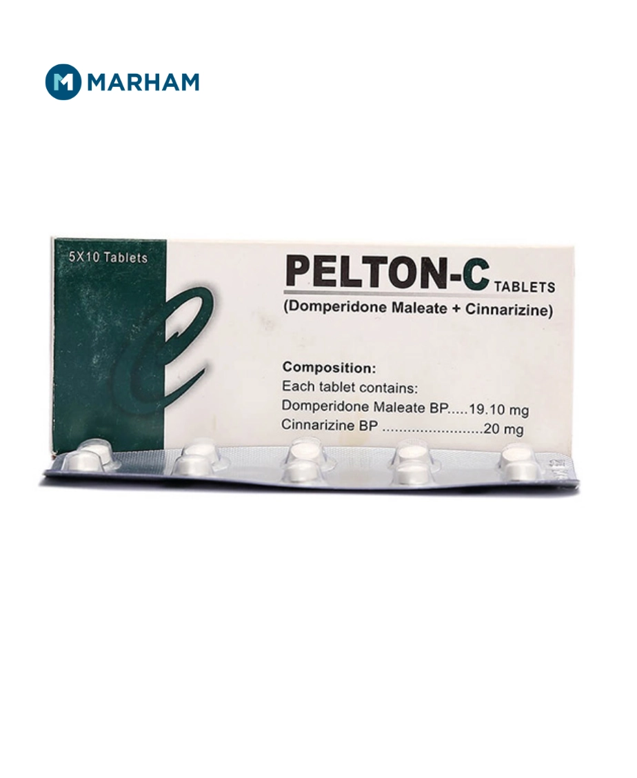 Pelton-C tablet uses include relieving nausea, vomiting, stomach upset, indigestion, and dizziness. It contains two ingredients: domperidone, which helps food move through the stomach and reduces nausea. The other one is cinnarizine, which helps control dizziness and motion sickness by calming the inner ear. This combination makes Pelton C tablet useful for stomach problems as well as travel-related nausea and balance issues.