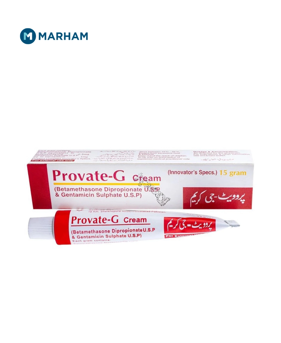 Provate G cream uses a combination topical medicine containing a potent corticosteroid (betamethasone dipropionate) and an antibiotic (gentamicin). The corticosteroid reduces inflammation, redness, and itching in skin conditions, while gentamicin treats or prevents bacterial infections that may complicate these conditions.