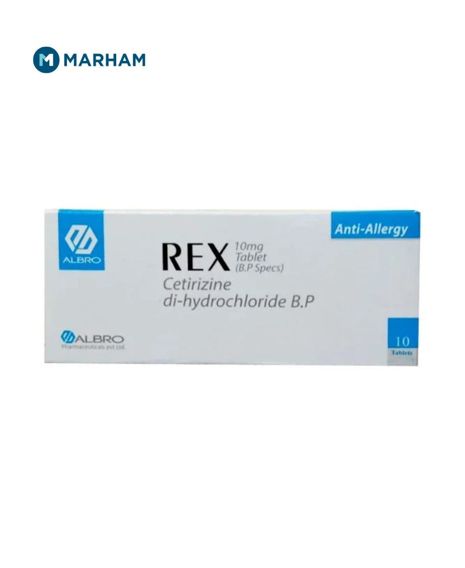 Rex tablet uses include treating allergic rhinitis, urticaria, and allergic skin conditions. It contains Cetirizine, a second-generation antihistamine that works by blocking histamine receptors to relieve allergy symptoms with minimal drowsiness.