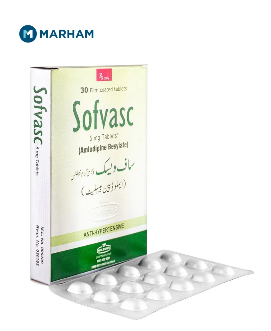 Sofvasc tablet is used to treat high blood pressure and chest pain caused by heart problems. It contains Amlodipine Besylate. It is a calcium channel blocker that relaxes blood vessels which makes it easier for the heart to pump blood. By improving blood flow, it prevents chest pain (angina) and lowers the risk of heart-related complications.
