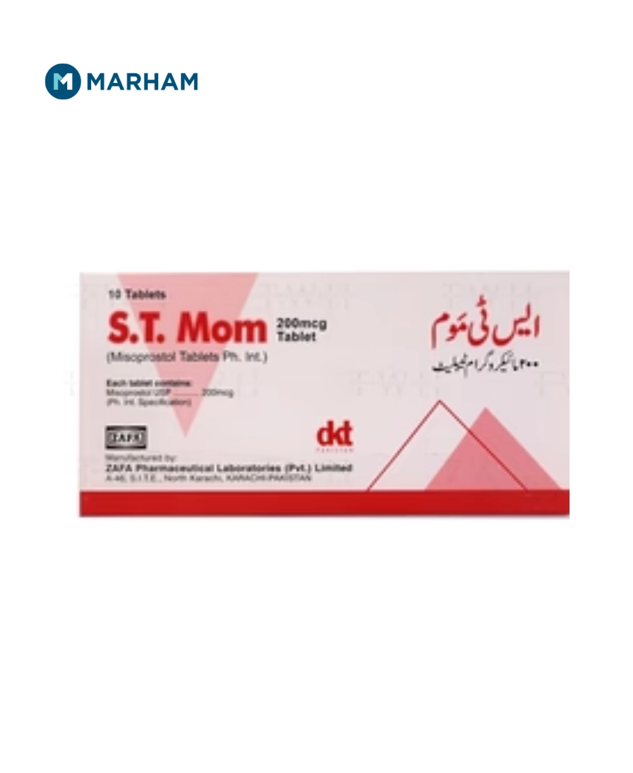 S.T. Mom Tablet uses include protecting the stomach lining from damage caused by painkillers, helping in the treatment of stomach and duodenal ulcers, and supporting specific medical procedures when prescribed by a doctor. It is commonly used in adults who are at risk of ulcer formation due to long-term medicine use, especially in Pakistan.