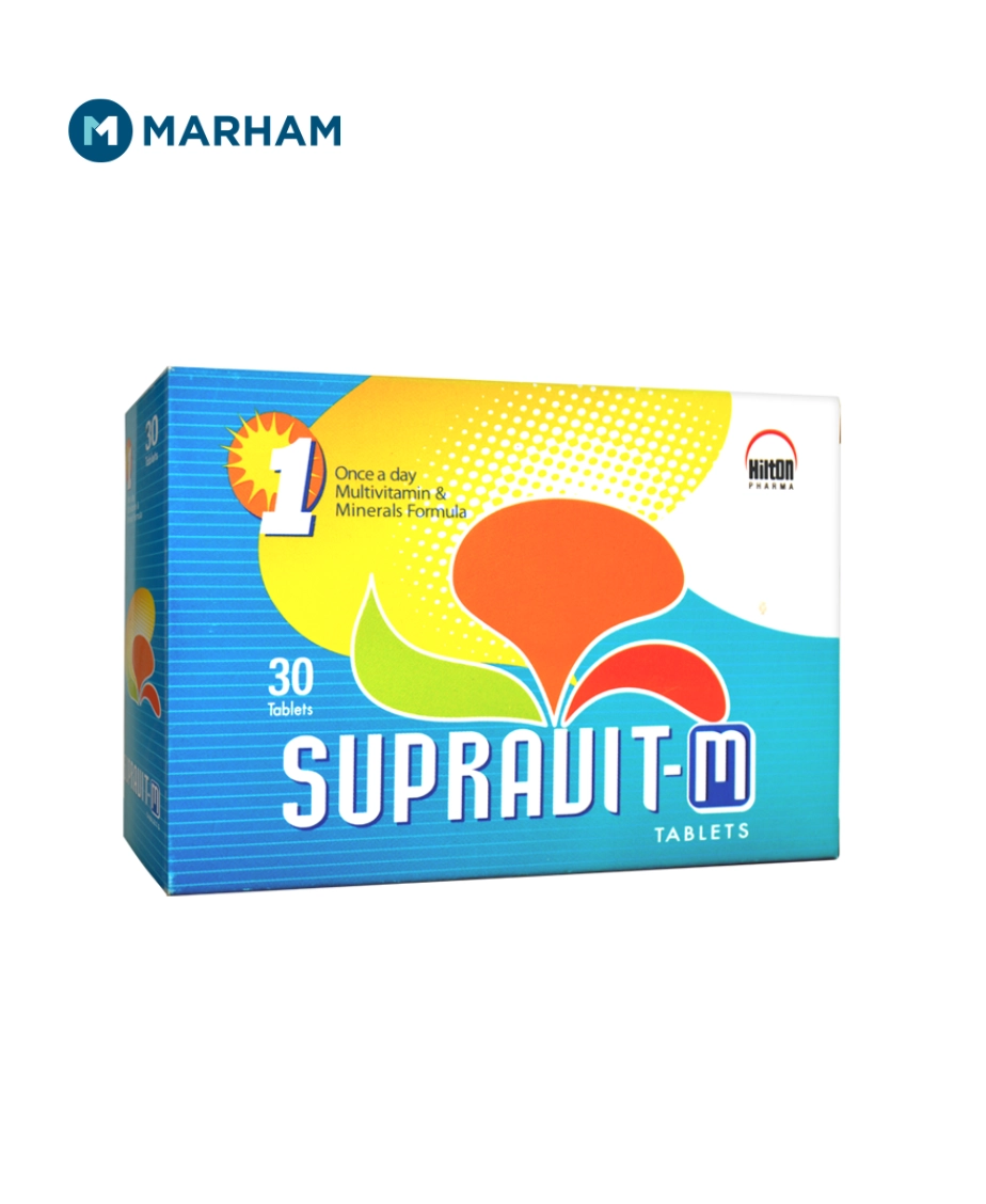 Supravit-M Tablet uses include helping prevent vitamin and mineral deficiencies caused by poor diet, pregnancy, or certain illnesses. It supports general health by supplying essential nutrients that the body may not get in adequate amounts from daily food intake, especially during times of increased nutritional need.