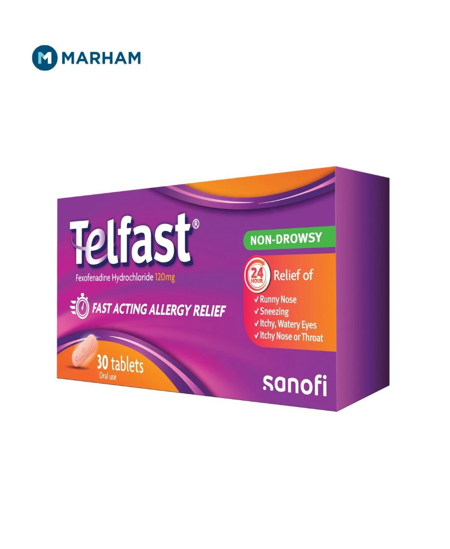 Telfast tablet uses include relieving allergy symptoms such as sneezing, runny nose, itchy or watery eyes, and itching of the nose or throat without causing drowsiness. It is a second-generation antihistamine containing fexofenadine, which helps in blocking the effects of histamine in the body.